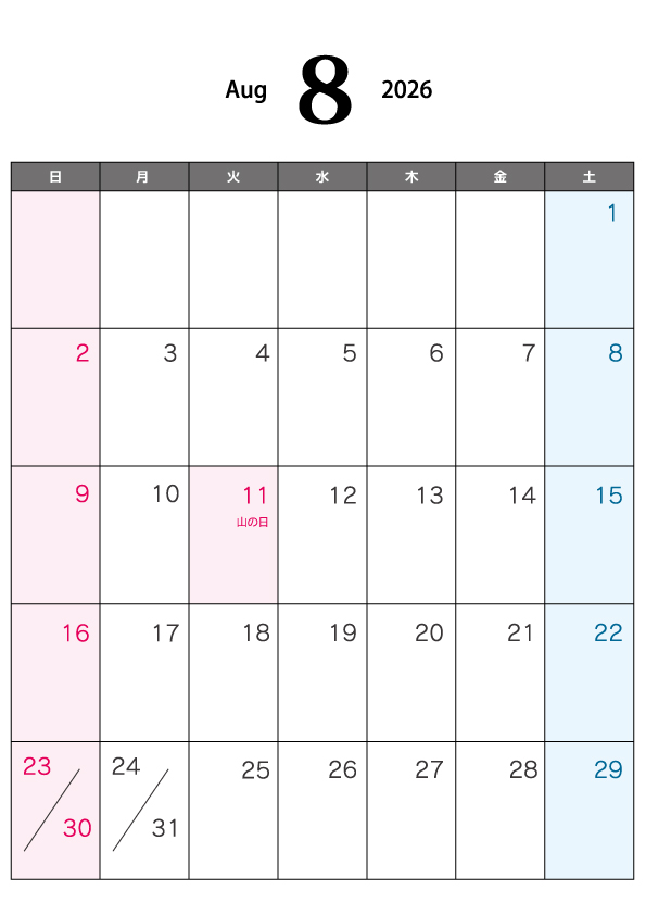 月曜始まりの2026年(令和8年)6月のカレンダー・印刷用に関連した無料イラスト